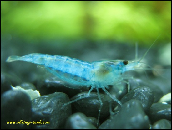 Previously available blue-colored neocaridina shrimps were blue pearl shrimps only. They came from selective breeding of snowball shrimps (Neocaridina cf. zhangjiajiensis var. white ).